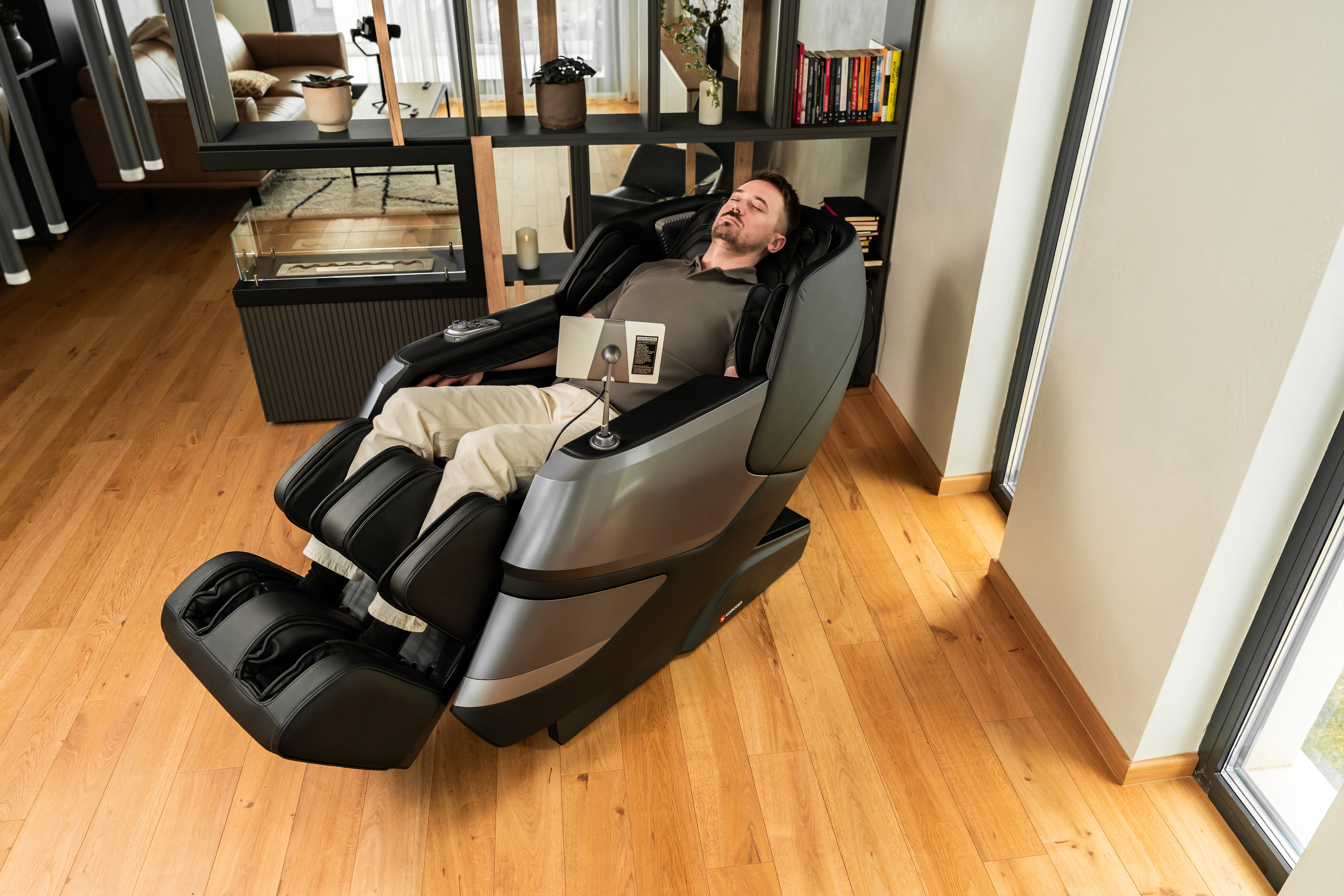 Sehen Sie, wie der FOCUS III Massagesessel in einem realen Zuhause aussieht – elegant, modern und perfekt integriert.
