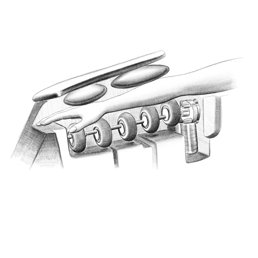 Jede Rolle verfügt über einen eigenen Motor, der so positioniert ist um eine kontinuierliche und oszillierende Bewegung zu gewährleisten.