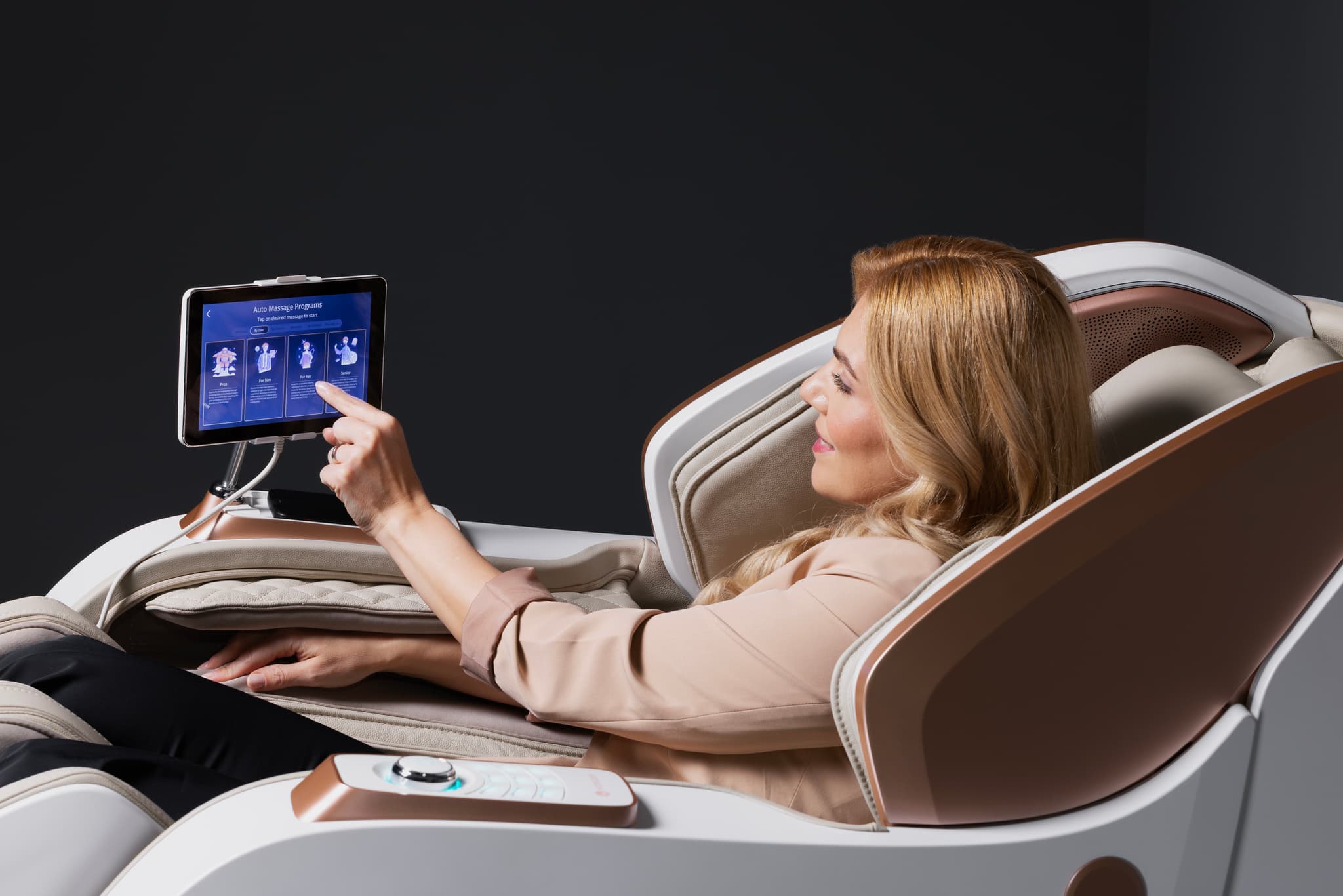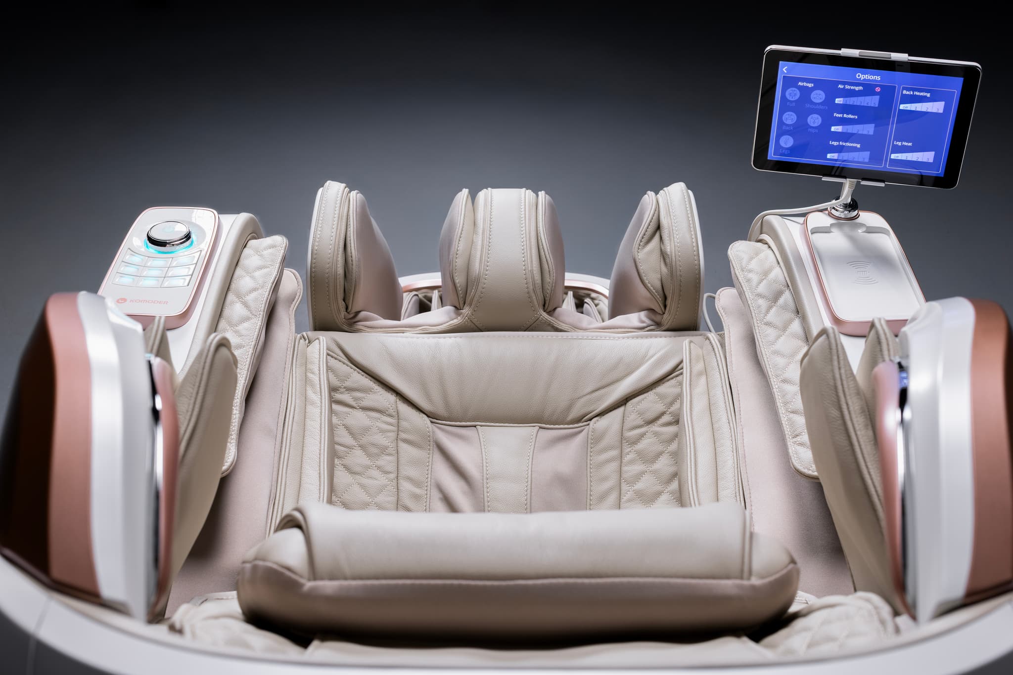 Der TITAN II Massagesessel ist mit einem 8-Zoll-Touchscreen-Tablet ausgestattet, das Ihnen die vollständige Kontrolle über jede Facette Ihrer Massage ermöglicht. Passen Sie die Massage ganz nach Ihren individuellen Vorlieben und Bedürfnissen an und genießen Sie ein Gefühl von Verwöhnung und Wohlbefinden. Der TITAN II bietet eine Massage, die selbst professionelle Masseure beeindrucken würde.